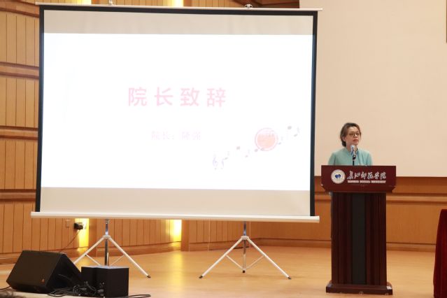 院长代表学院致辞。隆院长在致辞中讲到,2020年是不平凡的一年,大家跨过了高考的门槛,迈入了长江师范学院,这是值得庆贺的。并叮嘱学生们,要珍惜当下,遵守规则,敢于尝试。祝愿大家在长师音乐学院度过一段值得怀念的青春。