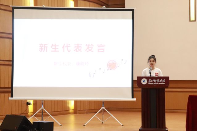 2020级舞蹈学4班的魏晓玲作为新生代表发言道,通过这次疫情,我们更加懂得了使命与担当,并决心在今后要慎独自律、扎实学习、开拓进取。