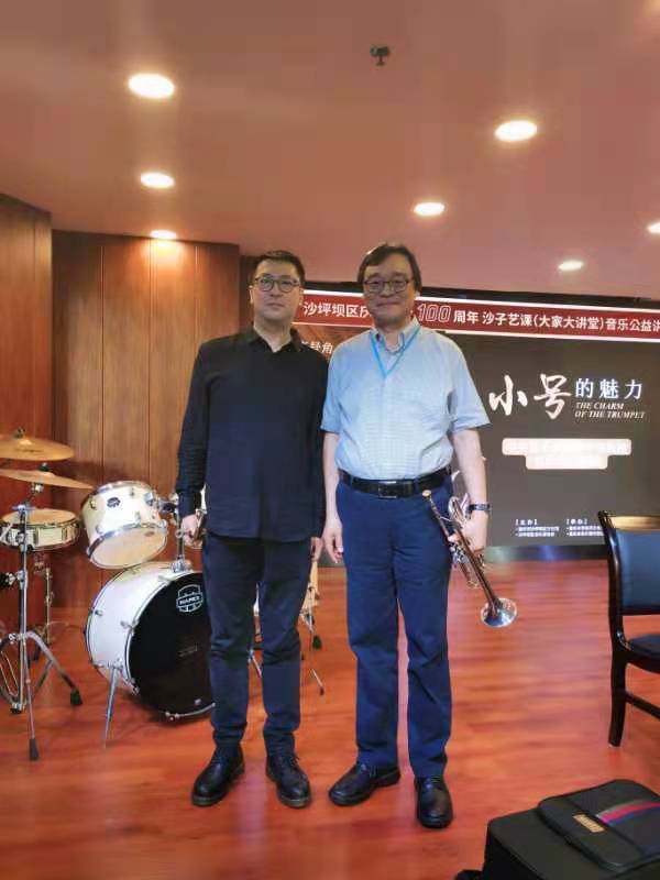 5月22日,重庆市音乐家协会小号联合会成立,我院教师张琛任命担任中国音协小号联合会理事重庆分会副会长。与重庆市歌剧院交响乐团演奏家们共同举行了音乐会。同时中央音乐学院博士生导师戴中晖教授为师生举办了公益音乐讲座,我院部分学生参加了此次活动,戴老师为中国小号届领军人物,给我们讲解了世界晨新的学习方法,使大家受益匪浅。
