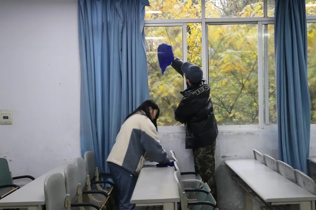为响应建设文明校园号召,创建干净卫生的学习环境,12月12日上午9:00,我院召集了50名劳动志愿者到诚意楼教室301-308进行“我为同学做件事”之“窗明几净”志愿服务。