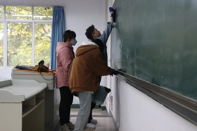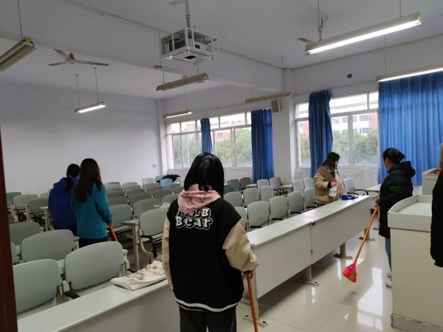 在劳动现场,志愿者们将积极热情和责任感化为劳动的动力,认真清扫着教室。看着同学们一张张脸庞依然洋溢着青春的笑颜这让我对劳动志愿者有了新的理解:尽管自己只算沧海一粟,不被惦记不被夸赞,但确实想为大家想做点什么......