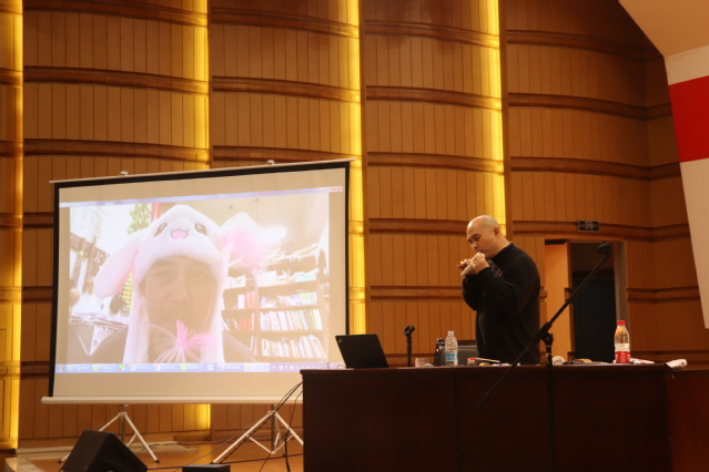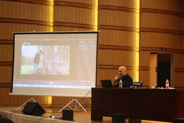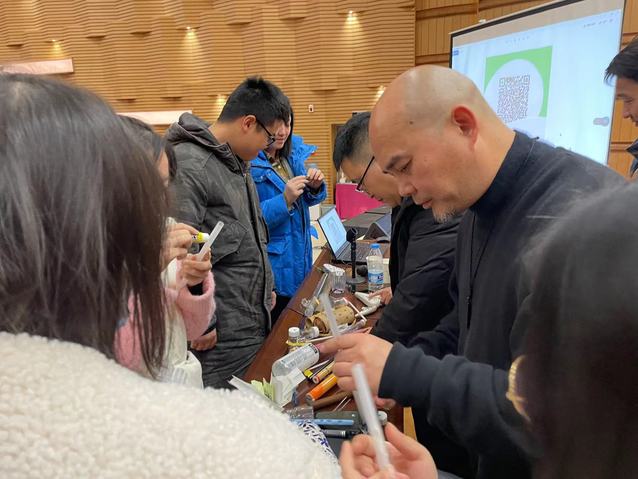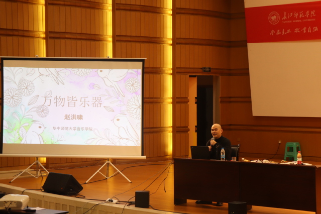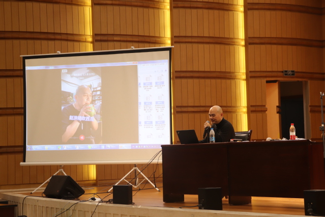 赵洪啸老师以“万物皆乐器”为题,从聆听万物之声、在生活中学习、乐器中的乐器、生活中的自制乐器四方面展开讲述,主张把万物当做乐器,学会就地取材玩出新的花样,用心去聆听万物之声,例如:树根的律动、酱油瓶的歌等等,要从生活中出发从生活中学习,发现亲身实践的所带来的成就感,希望大家可以在动手的快乐中与音乐有更多的交流和聆听。