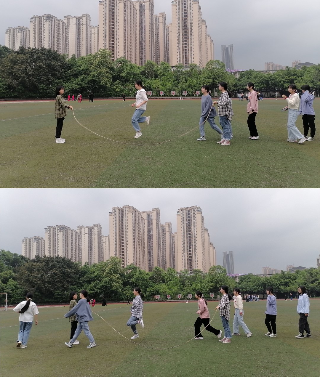 下面是我们的跳长绳项目,跳长绳活动时间虽短,但丰富了学生的课余生活,给学生们带去了乐趣,又达到了锻炼体质的目的。在跳长绳中,同学们充满活力,默契十足,充分体现了相互帮助、互相配合的团体精神,也增强了班级的凝聚力,相信同学们今后不仅能在身体素质方面有所提高,也能在其它各方面有所提升,并将和谐、友谊、奋进的精神发扬下去。让学生在享受阳光体育的同时,也充分展示集体和个人风采。