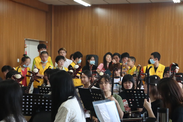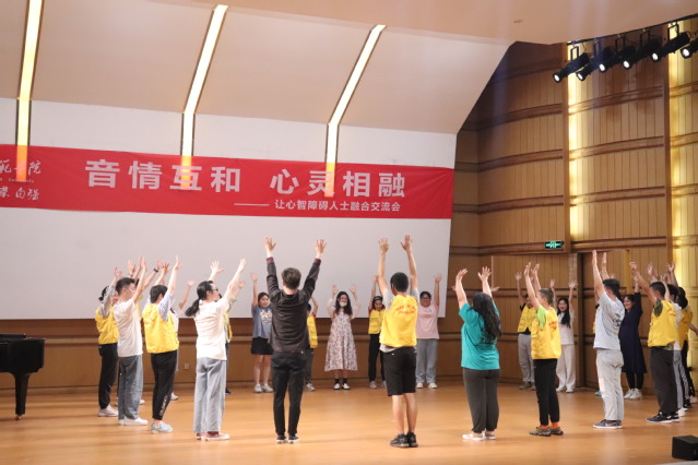 交流会后,在我院“光祈班”同学们带领之下,康复中心一行师生参观了逸夫楼各个乐团,沉浸式体验各个乐团的排练。“校园好漂亮好大”、“好多乐器好好听”、“下次还要来”... ...康复中心的孩子们欢舞着,脸上露出纯真的笑容。