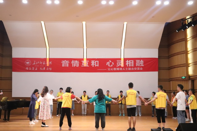 5月10日下午2点30分,我院联合涪陵区残疾人康复服务中心开展“助力心智障碍患儿融合”交流会活动。本次参会嘉宾有乐一融合特殊需要儿童康复托养中心涪陵校区彭文华校长、陈艳老师,我院院长隆强、党委书记冉崇胜、学工办主任魏葫、音教系系主任姜妍妍以及青年教师周俊安出席交流会现场。同时,乐一融合涪陵校区的孩子们和2019、2020级“光祈班”全体同学参与交流会节目表演。交流会由姜妍妍老师主持。