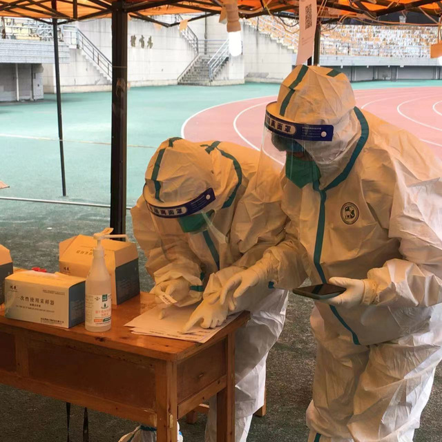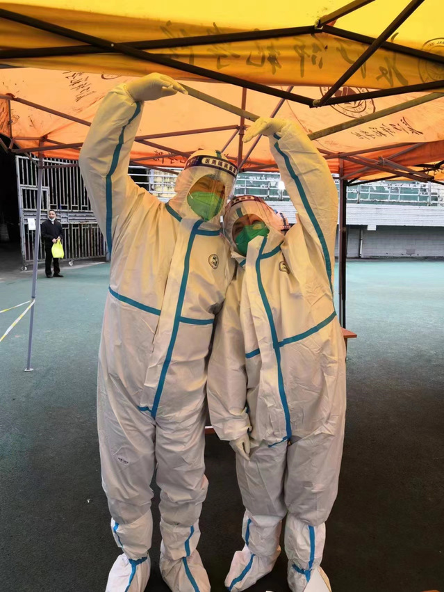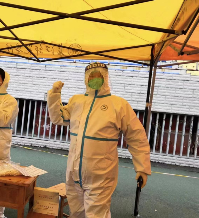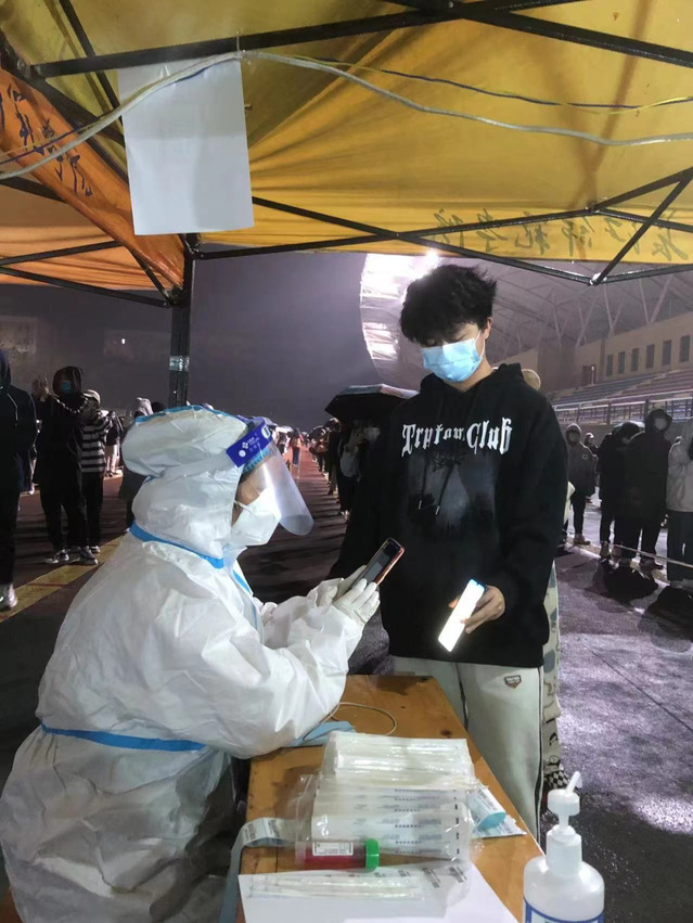(教师党员隆强、吕培、刘向阳、李宁、邢方方、胡爱婷、刘子涵、魏葫、陈瑜、韩国担任核酸检测志愿者)