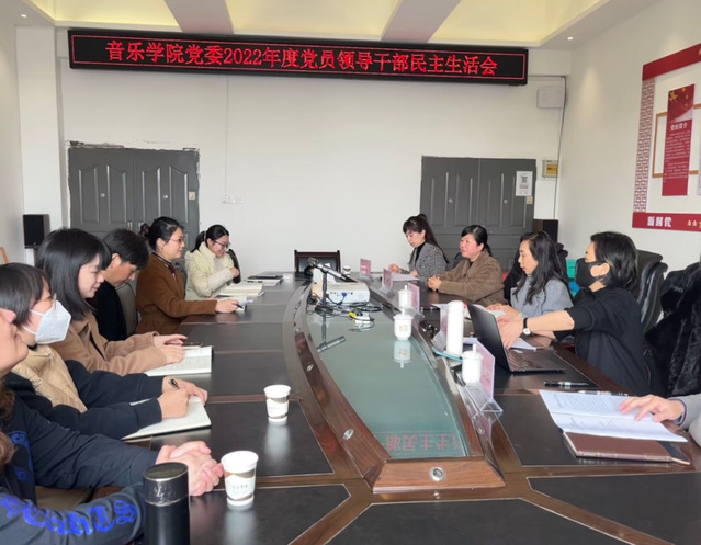 2023年2月27日下午,音乐学院党委在逸夫楼549会议室召开2022年度党员领导干部民主生活会。会议由学院党委书记、院长隆强主持,学校督导领导张敏书记出席,学院党委委员、科级干部、系主任、辅导员、组织员列席会议。