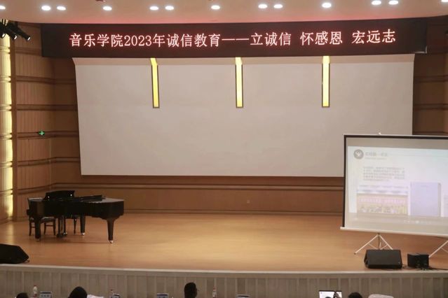 为弘扬中华民族传统美德,培养学生诚信意识。10月10日晚,我院于音乐厅开展2023年“立诚信,怀感恩,宏远志”诚信教育主题讲座。大会由2021级辅导员王咏梅主讲,2023级全体学生参会。