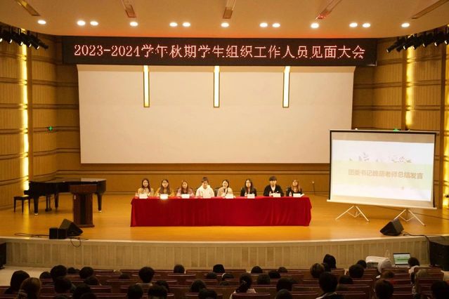10月24日中午,我院于音乐厅召开学生组织工作人员见面大会,会议由团委书记魏葫主持,全体学生组织工作人员参会。