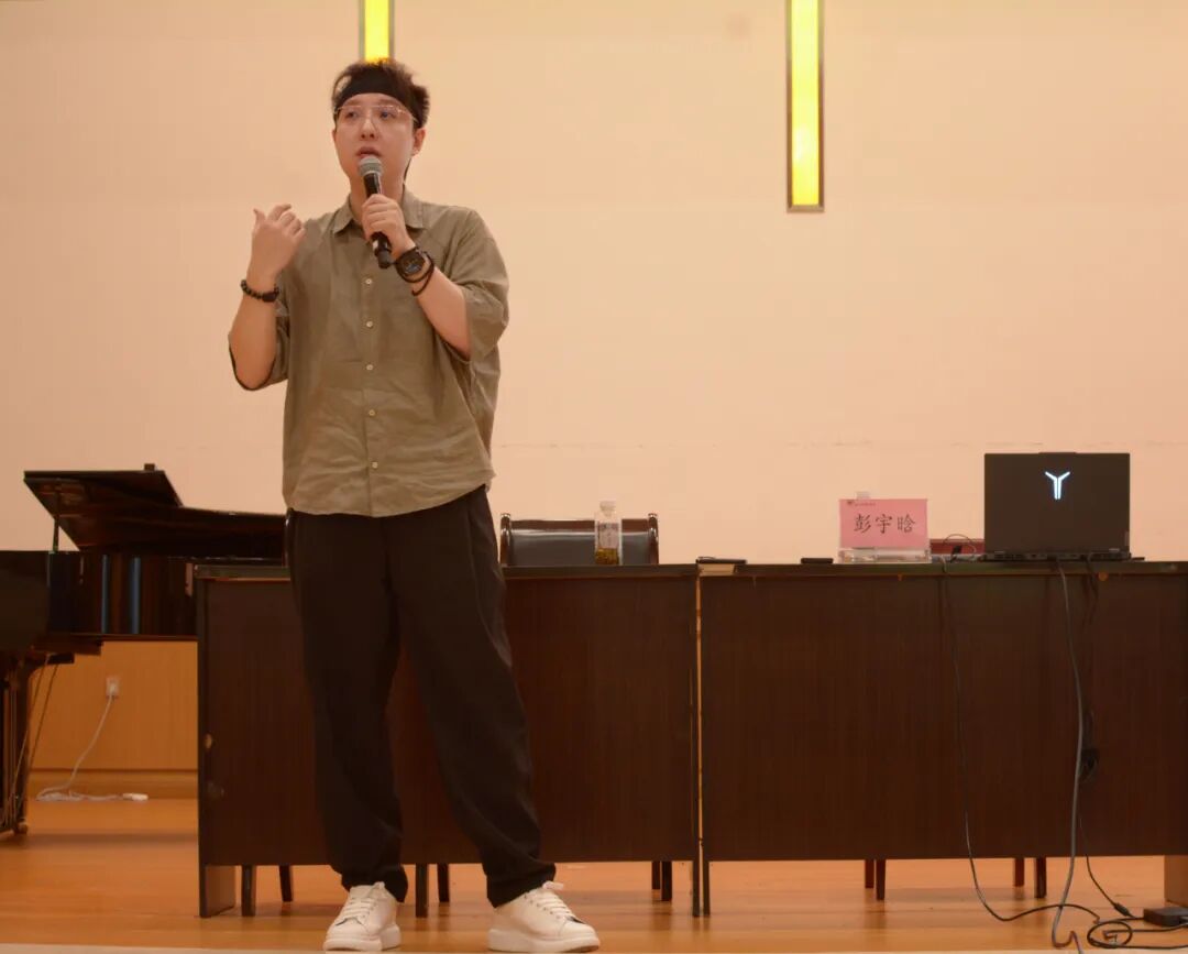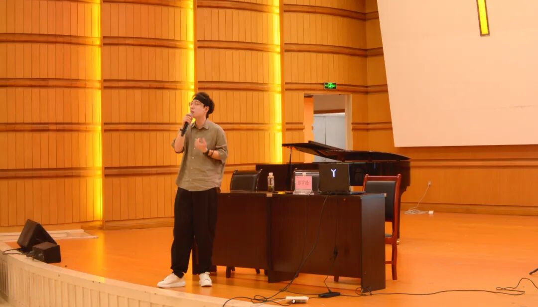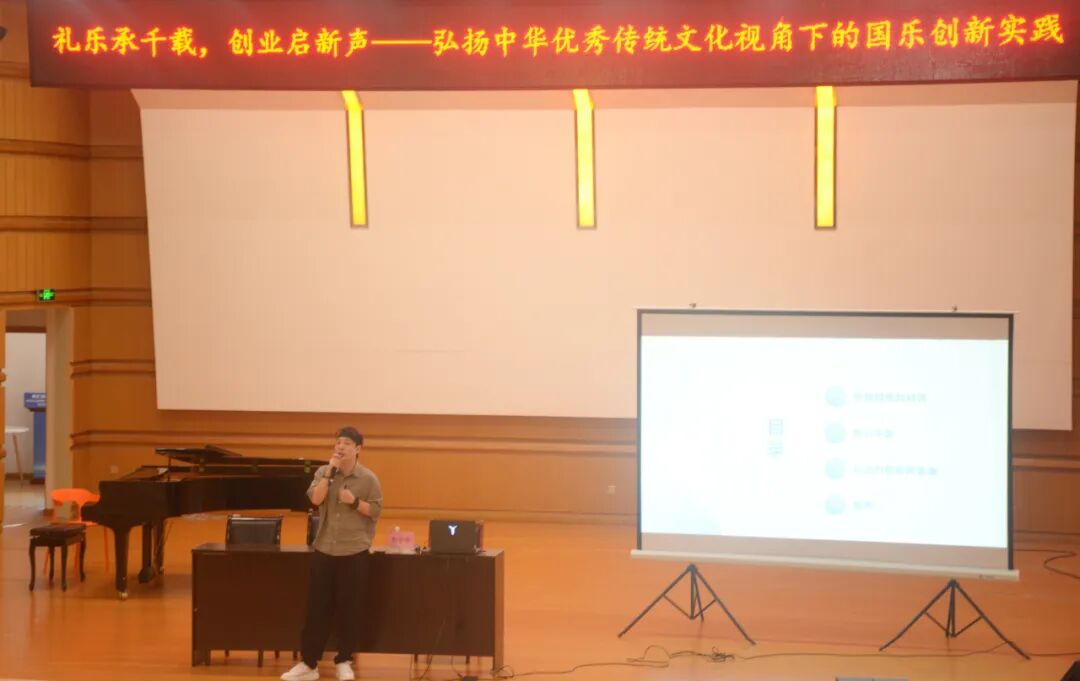 5月22日上午,我院在音乐厅隆重举办了一场别开生面的主题讲座 —— “礼乐承千载,创业启新生 —— 弘扬中华优秀传统文化视角下的国乐创新实践”。讲座特邀 2010 级杰出校友彭宇晗倾情主讲,现场气氛热烈,学工办主任魏葫主持了此次讲座,众多我院学子满怀热忱地到场聆听,共同探索国乐与创业的交融之路。
