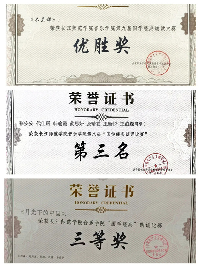 2025年11月,音乐学院“国学经典”院级三等奖;