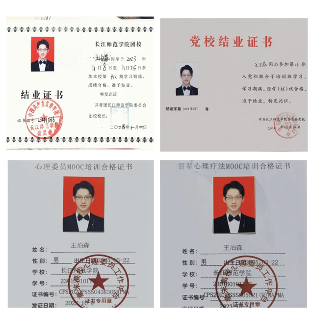 2024年11月,获长江师范学院团校第十八期青马工程结业证书;