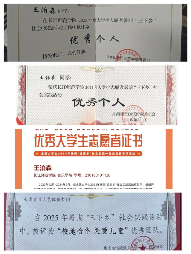 2025年11月,获暑期“三下乡”优秀个人;