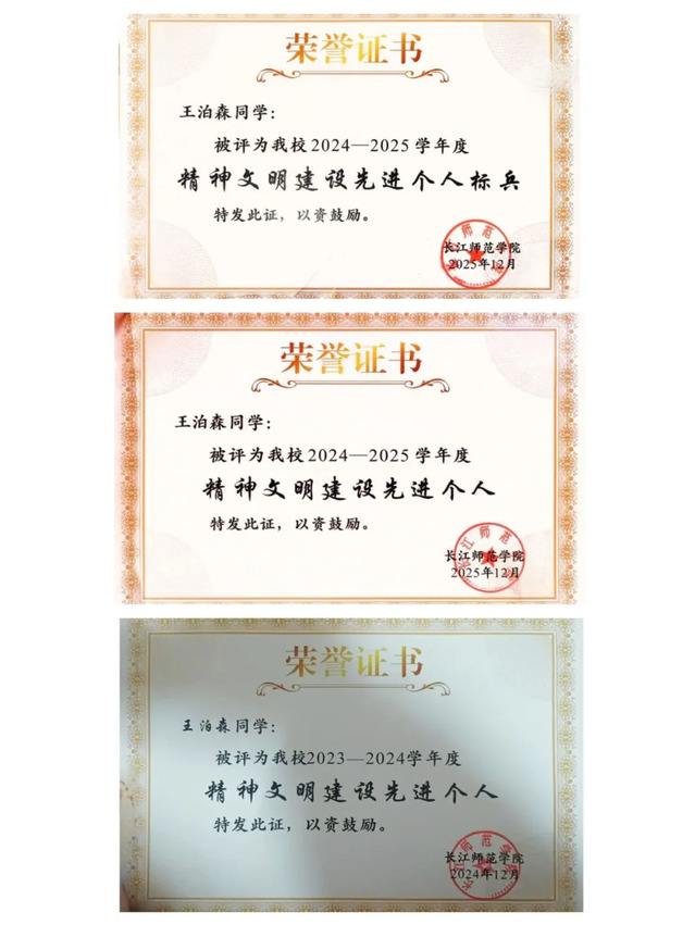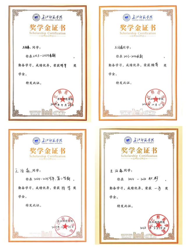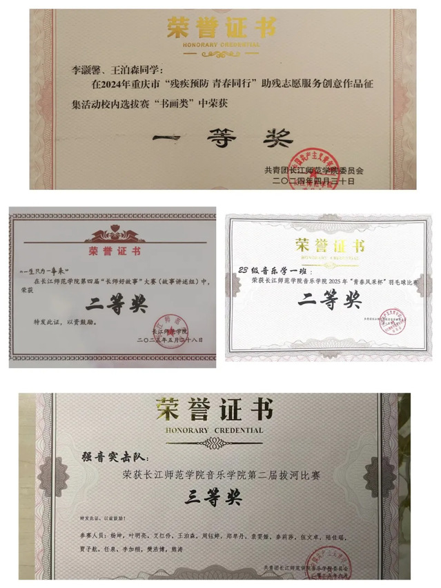 2025年10月,获长江师范学院校级特等奖学金;