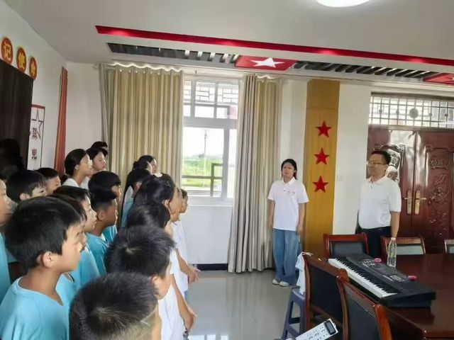 2025年暑假,我院学子刘莹加入家乡菏泽市牡丹区小留镇的“星火助学团”。作为音乐学院的学生,她敏锐地意识到,音乐是打开孩子们心扉的钥匙。她发挥专业特长,牵头组建了“星火少年合唱团”。面对20余名零基础的乡村儿童,她从最基础的发声练习开始,用耐心与陪伴,带领孩子们一步步走进音乐的世界。