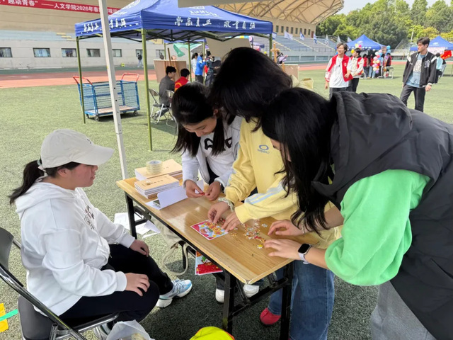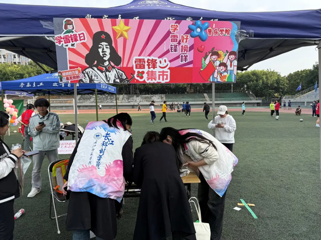 校园里,一场“雷锋集市”在南操火热开市。限时拼图、红歌传唱……同学们在协作与歌声中感受互助的快乐。《歌唱祖国》《没有共产党就没有新中国》等经典旋律回荡操场,雷锋精神在轻松有趣的互动中深入人心。